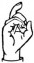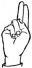 На ћирилици написано КАЋА ШКОБИЋ састоји се из 10 слова [?]. Исписано ћириличном једноручном азбуком за глувонеме: